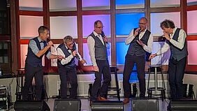Mit einem vielfältigen Repertoire und witzig amüsanten Moderationen sorgt das Aachener A-Cappella-Männer-Ensemble, die Fünflinge für eine entspannte Atmosphäre. Und wenn dann der Chor KataStrophe das Ganze noch mit seinem abwechslungsreichen Repertoire ergänzt, kann etwas Großes daraus werden – A-Capella-Gesang der mitreißt und bewegt...